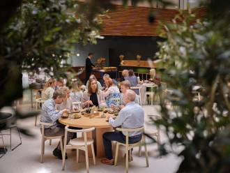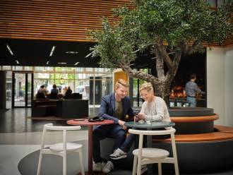 Ejendommen er fra 2008, og udover løbende opgraderinger har vi i 2024-25 givet fællesarealerne i stuen et større løft med flere fællesfaciliteter, såsom mødecenter, personalerestaurant og lounge.