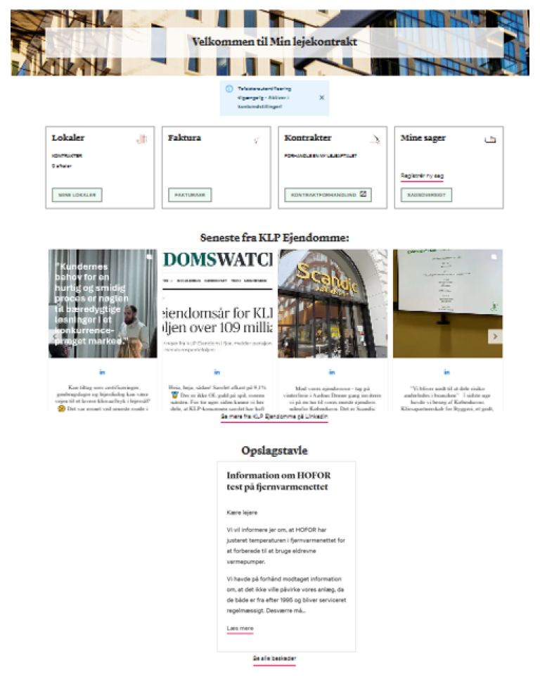 Hver lejer har egen adgang fordelt på et antal personer. Platformen bl.a. tilgås ved at trykke på menupunktet Min Lejekontrakt øverst op denne side.